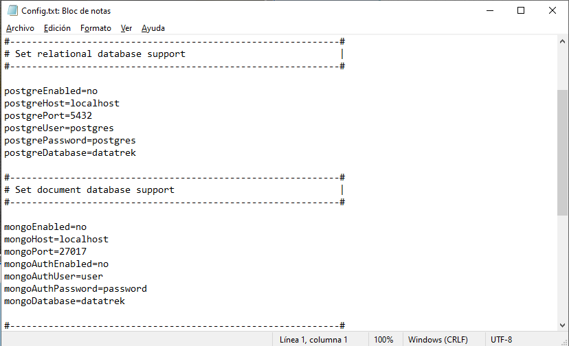 Actualmente las bases de datos soportadas son PostgreSQL y MongoDB, concretamente las pruebas se han hecho con: