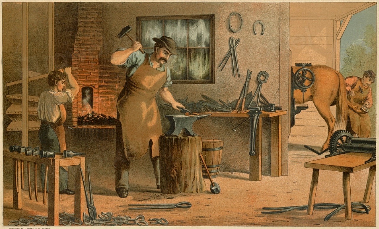 "Prang's aids to object teaching - trades and occupations - plate 4 - blacksmith" con licencia CC0