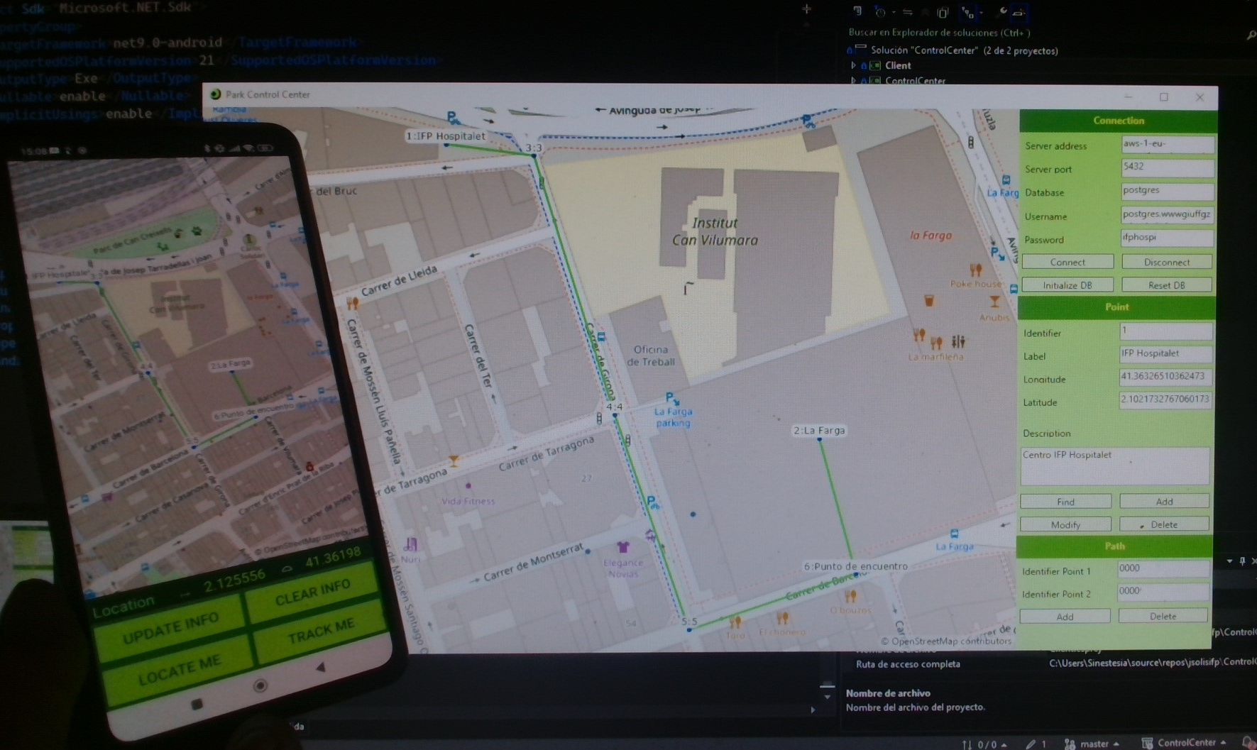 Estos días he completado una pequeña "suite" formada por una aplicación de escritorio y una aplicación móvil que permite gestionar una serie de puntos y rutas y mostrarlos en un mapa.
